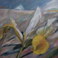 As an Algarve artist, I wanted to capture a moment of quiet reflection and natural beauty in this Algarve original art. This oil painting portrays a single Protea pincushion flower gently floating on the rippling surface of the water, evoking a sense of serenity and contemplation. The delicate, spiky petals of the pincushion Protea are painted in soft, muted tones of cream and pale yellow, standing in striking contrast against the dark, swirling water beneath.
