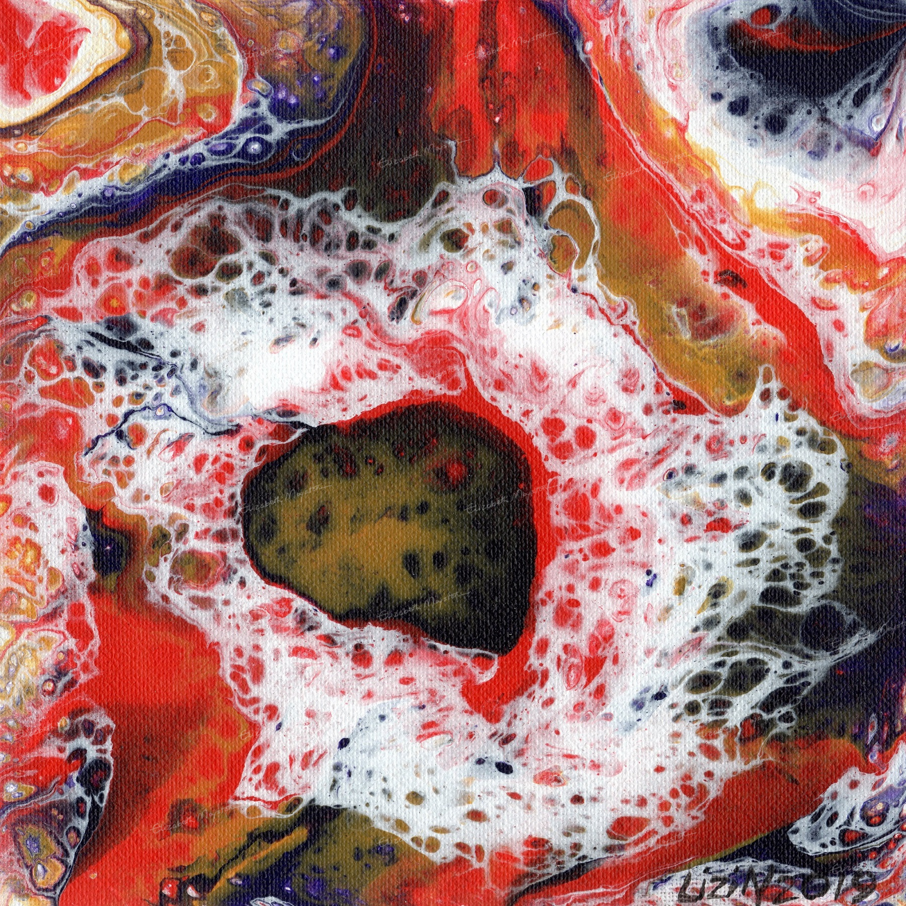 movement, created using acrylic pouring. The organic flow of colours in this
