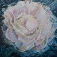 As an Algarve artist, I wanted to capture a moment of quiet reflection and natural beauty in this Algarve original art. This oil painting portrays a single Protea pincushion flower gently floating on the rippling surface of the water, evoking a sense of serenity and contemplation. The delicate, spiky petals of the pincushion Protea are painted in soft, muted tones of cream and pale yellow, standing in striking contrast against the dark, swirling water beneath.