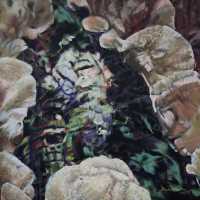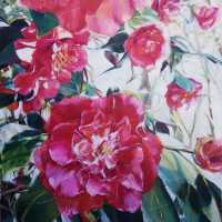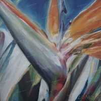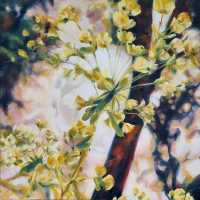 As an artist painting in the Algarve, I am inspired by the interplay of light, shadow, and movement in nature. The green leaves of the flower are rendered with realistic detail, their edges gently blurred by the shifting reflections of water. The surface itself distorts and mirrors the image of the Protea, adding a dreamy, almost ethereal quality to the composition.
