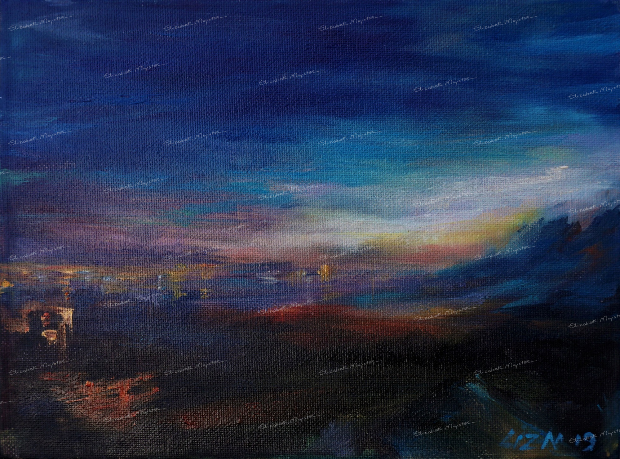 This Algarve original art piece carries a moody, atmospheric quality, capturing the essence of a nighttime or twilight landscape. I wanted to create a sense of mystery and depth, using dominant deep blues and dark umbers to draw the viewer into the scene. The soft, blended brushstrokes add to the dreamlike, almost ethereal feel, making the composition feel as if it exists between reality and imagination. Hints of gold, orange, and red emerge from the horizon as scattered lights, suggesting the distant glow of a city or shimmering reflections on water. The abstract nature of the piece allows for personal interpretation, evoking emotions of solitude, wonder, or quiet contemplation.